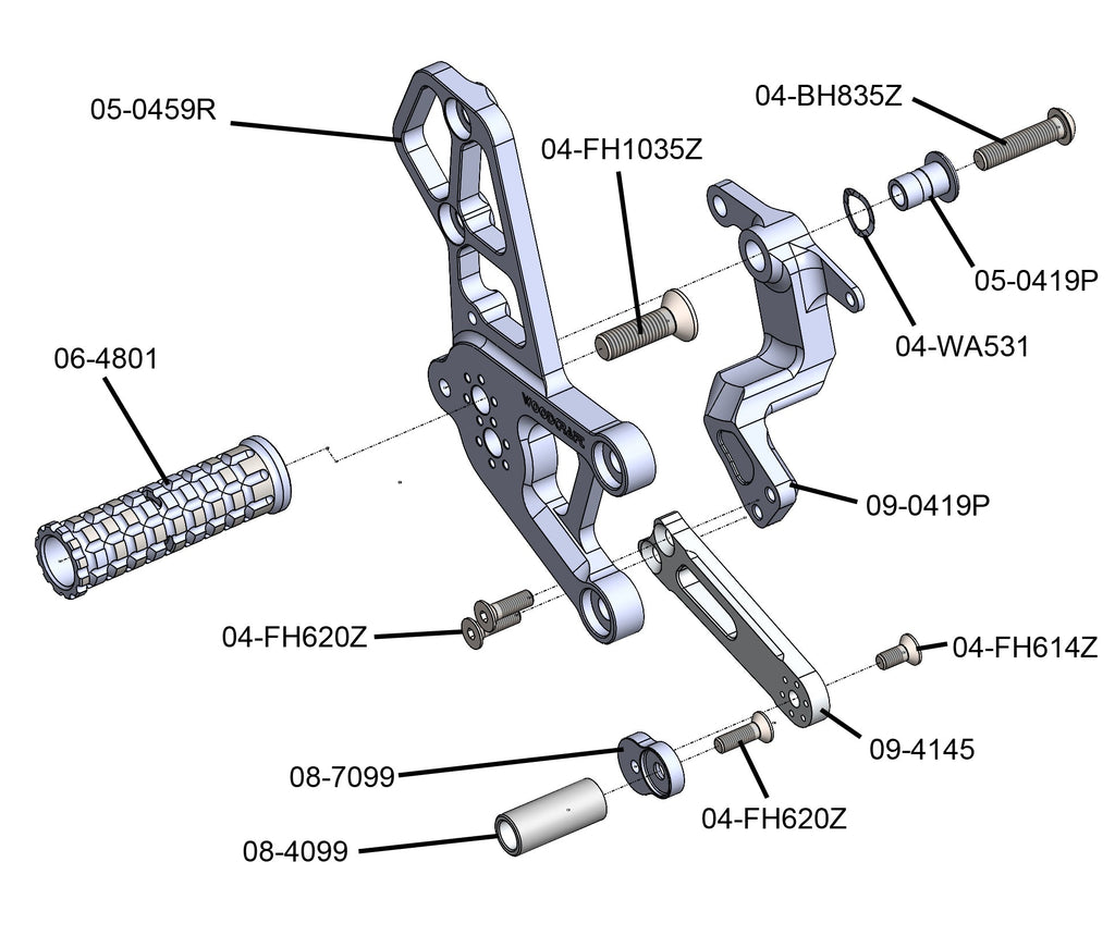 • Virtually any part in our rearset kit can be purchased separately from our kits under the Spare Parts tab