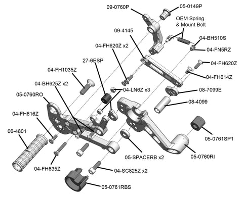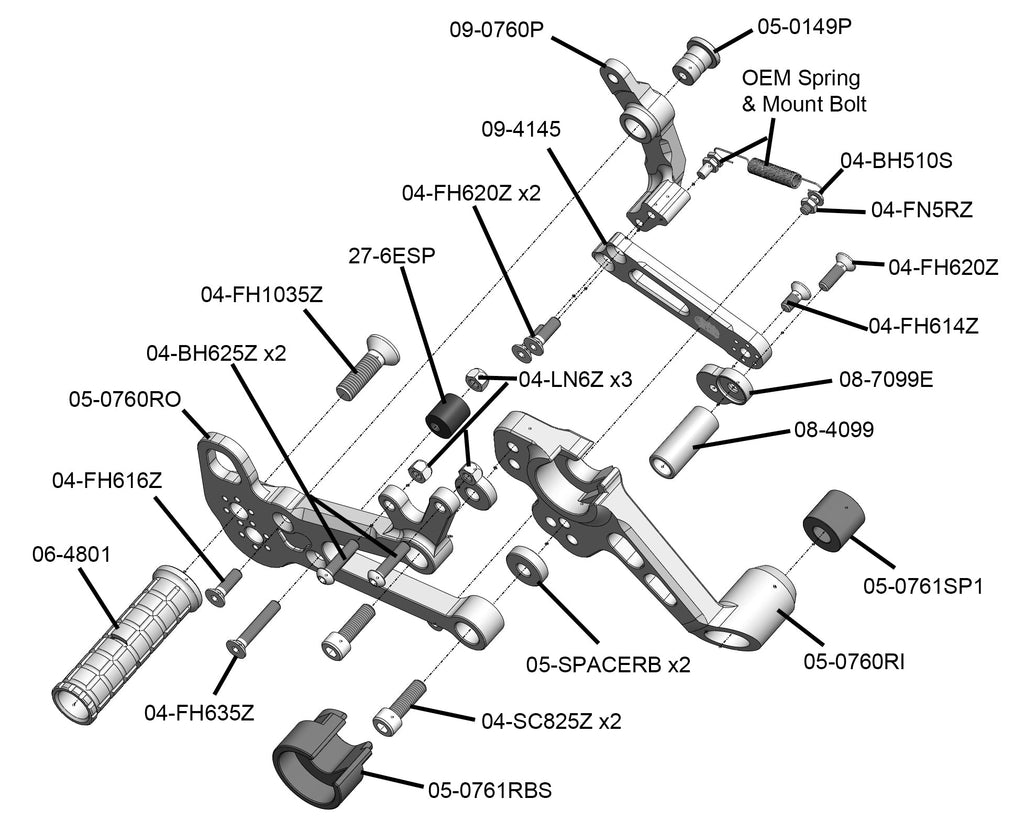 • Virtually any part in our rearset kit can be purchased separately from our kits under the Spare Parts tab
