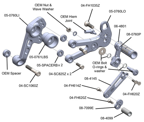 OEM Parts: Woodcraft rearsets assume you are replacing the OEM rearsets.  This kit utilizes some OEM components - see exploded drawings for details.