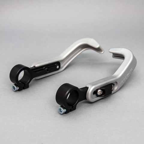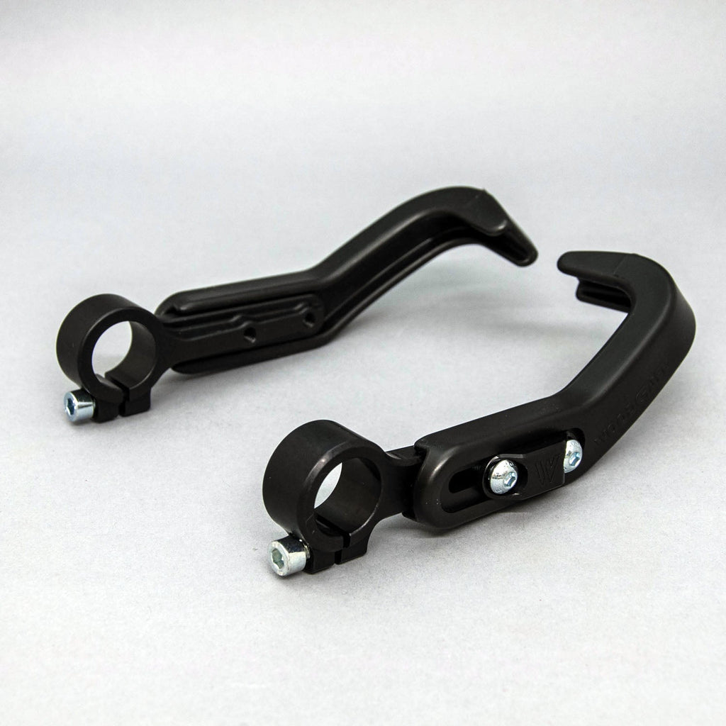 Brake lever & hand protection that makes sense! Why protect your right side? As you may know from the Daytona 200 final lap disaster in 2011- brake lever contact can be catastrophic. In addition to preventing accidental lever contact- these guards also help to protect both your levers and your right hand in a crash. Features you'll find in ALL Woodcraft Handguards