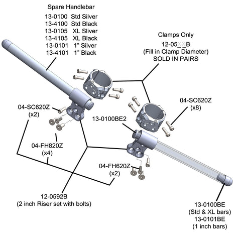 If you have any questions please contact us at Woodcraft and we will be happy to guide you through the process for your individual motorcycle. This kit has special 1 inch diameter bars that fit many Harley Davidson and some Triumph Models. To see our recommendations for bars please click the red link above the "Select Options" bar above.