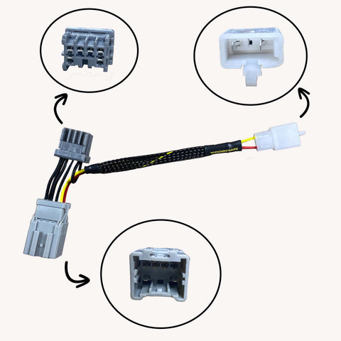 It installs in seconds and requires no modifications to your stock harness - no need to cut any wires! This means easy re - installation of stock components down the road.
