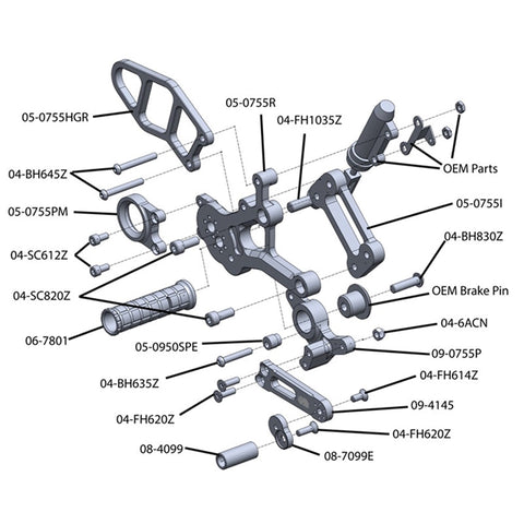 OEM Parts: Woodcraft rearsets assume you are replacing OEM rearsets. This kit utilizes some OEM components - see exploded drawings for details.