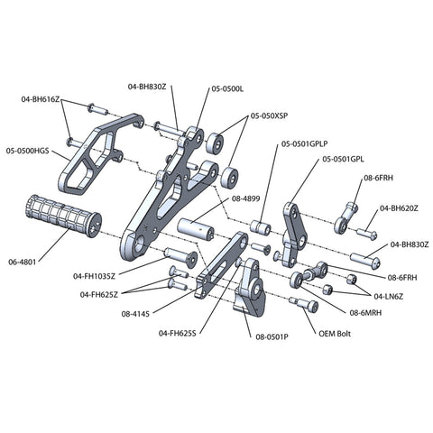 OEM Parts: Woodcraft rearsets assume you are replacing OEM rearsets. This kit utilizes some OEM components - see exploded drawings for details.