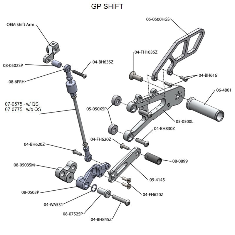 - Virtually any part in our rearset kit can be purchased separately from our kits under the Spare Parts tab
