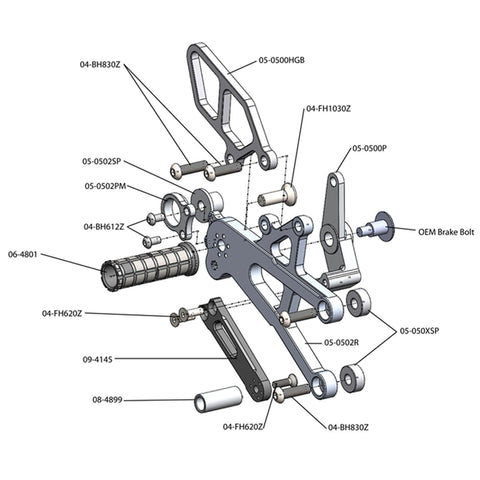 - Virtually any part in our rearset kit can be purchased separately from our kits under the Spare Parts tab