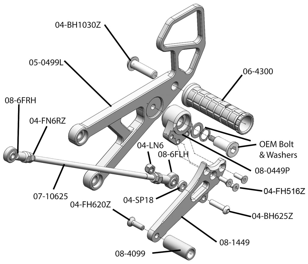 OEM Parts: Woodcraft rearsets assume you are replacing OEM rearsets. This kit utilizes some OEM components - see exploded drawings for details.