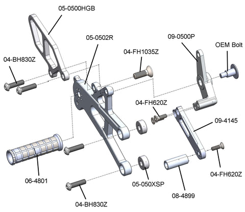 OEM Parts: Woodcraft rearsets assume you are replacing OEM rearsets. This kit utilizes some OEM components - see exploded drawings for details.