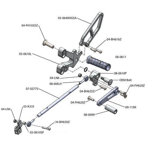 OEM Parts: Woodcraft rearsets assume you are replacing OEM rearsets. This kit utilizes some OEM components - see exploded drawings for details.