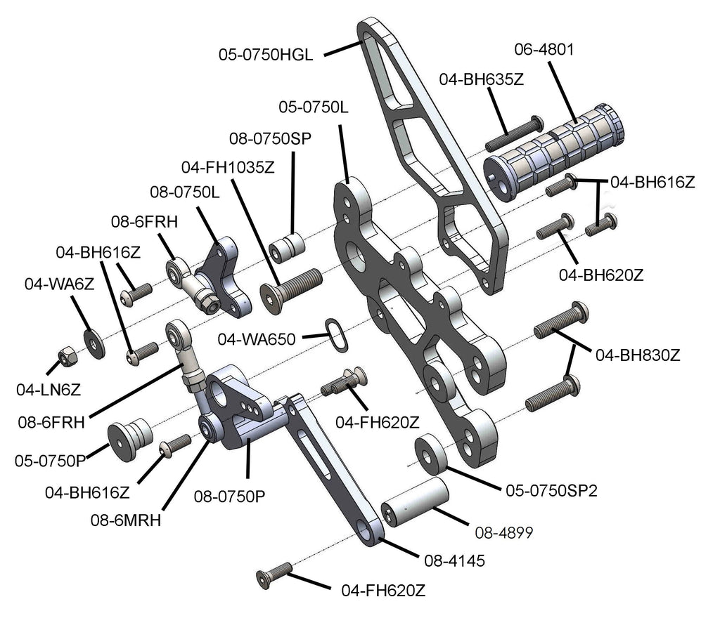 • Virtually any part in our rearset kit can be purchased separately from our kits under the Spare Parts tab