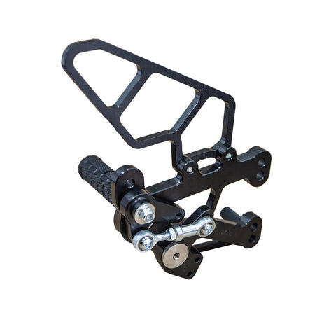 • Woodcraft rearset kits offer eccentric foot and toe pegs for adjustability (where applicable).