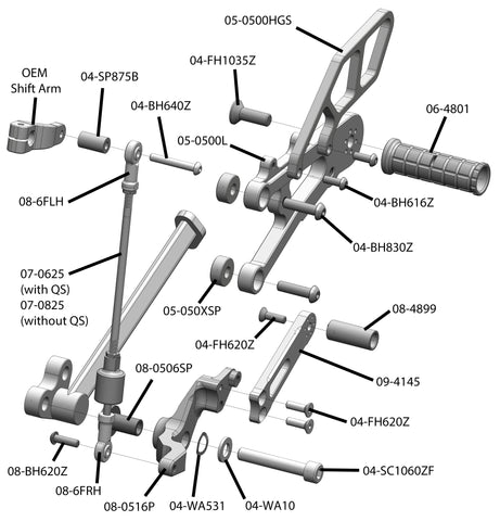 OEM Parts: Woodcraft rearsets assume you are replacing OEM rearsets. This kit utilizes some OEM components - see exploded drawings for details.