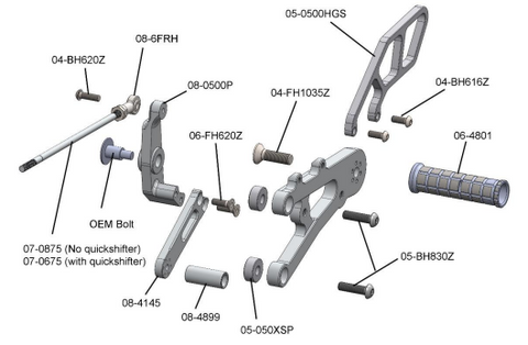 OEM Parts: Woodcraft rearsets assume you are replacing OEM rearsets. This kit utilizes some OEM components - see exploded drawings for details.