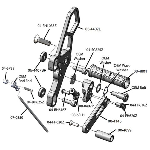 • Virtually any part in our rearset kit can be purchased separately from our kits under the Spare Parts tab