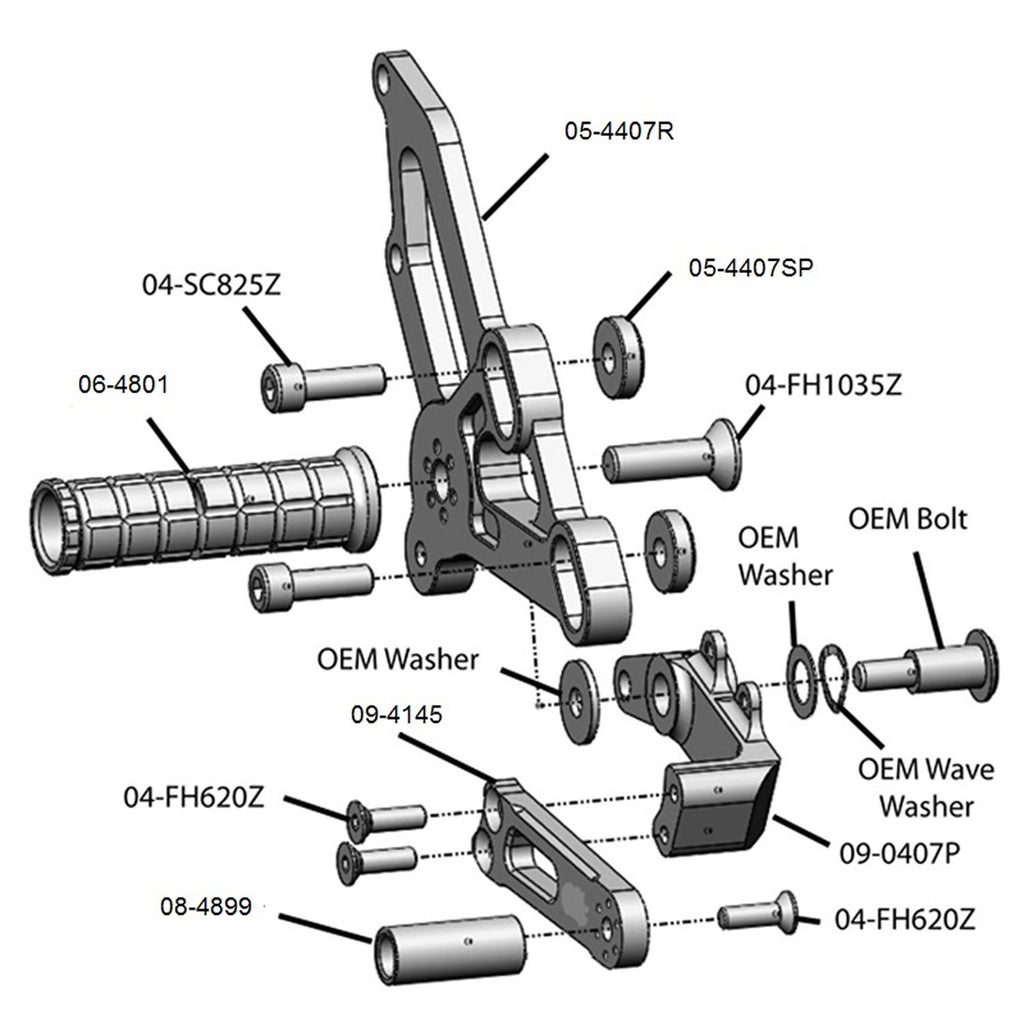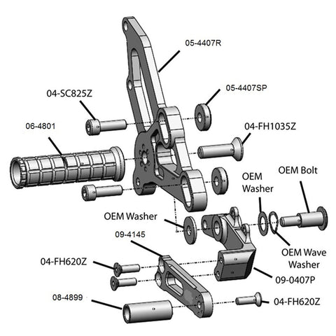 OEM Parts: Woodcraft rearsets assume you are replacing OEM rearsets.  This kit utilizes some OEM components - see exploded drawings for details.