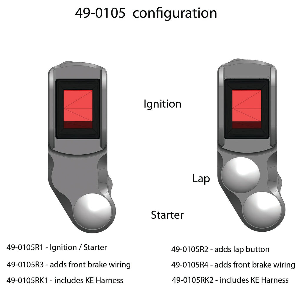 Original Features and Options: In addition to the standard functions- ALL of our right side switches with Keyswitch Elimination include a Fused 12V Accessory Wire that can be used to power lap timers- transponders- or other commonly used items. No more splicing and running wires for power! The specially selected Red Rocker Switch used for power on the right side not only gives you a visible indication that the bike is on- but it also gives corner marshals no doubt which switch to use to shut your bike off after a crash (this alone can save an engine).