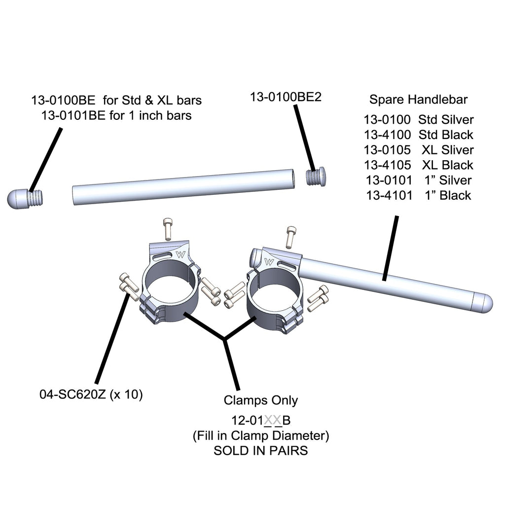 The motivation behind the Woodcraft 3-piece Split Clip-Ons is simple: installing- servicing- and removing clip-ons can be a real pain! With our 3-piece design we've eliminated the need to disassemble the front-end to service your Clip-Ons. These quality parts are made in the USA! Lightweight- great looks- improved strength- adjustability and easy installation make Woodcraft 3-piece Split Clip-Ons an essential addition to any sportbike. These kits include a pair of bars.