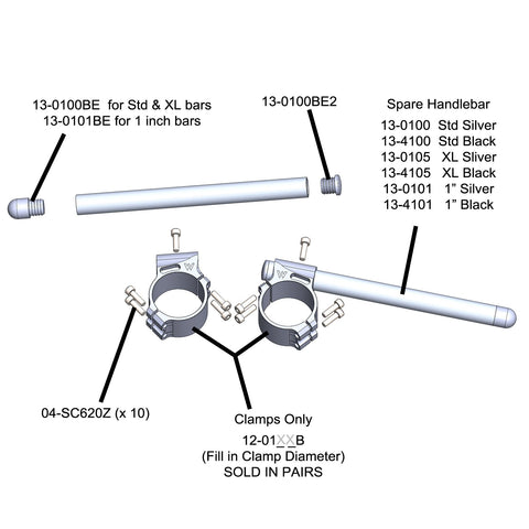 The universal replacement bars can pay for themselves in one crash! Most OEM bars are expensive 1-piece assemblies and require complete front end disassembly to replace. Woodcraft clipons utilize inexpensive and easy to find universal replacement bars that will help ensure that a minor tip over won't end your day at the track! -